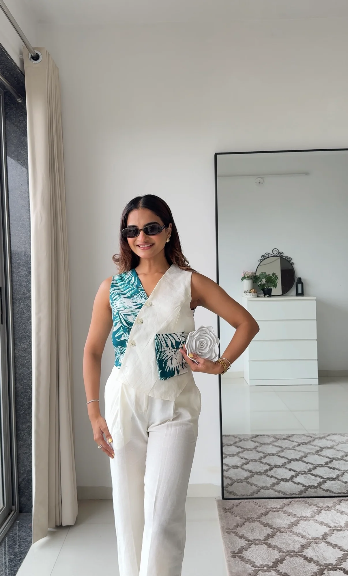 Tiya Linen Pants with White & Green Waistcoat
